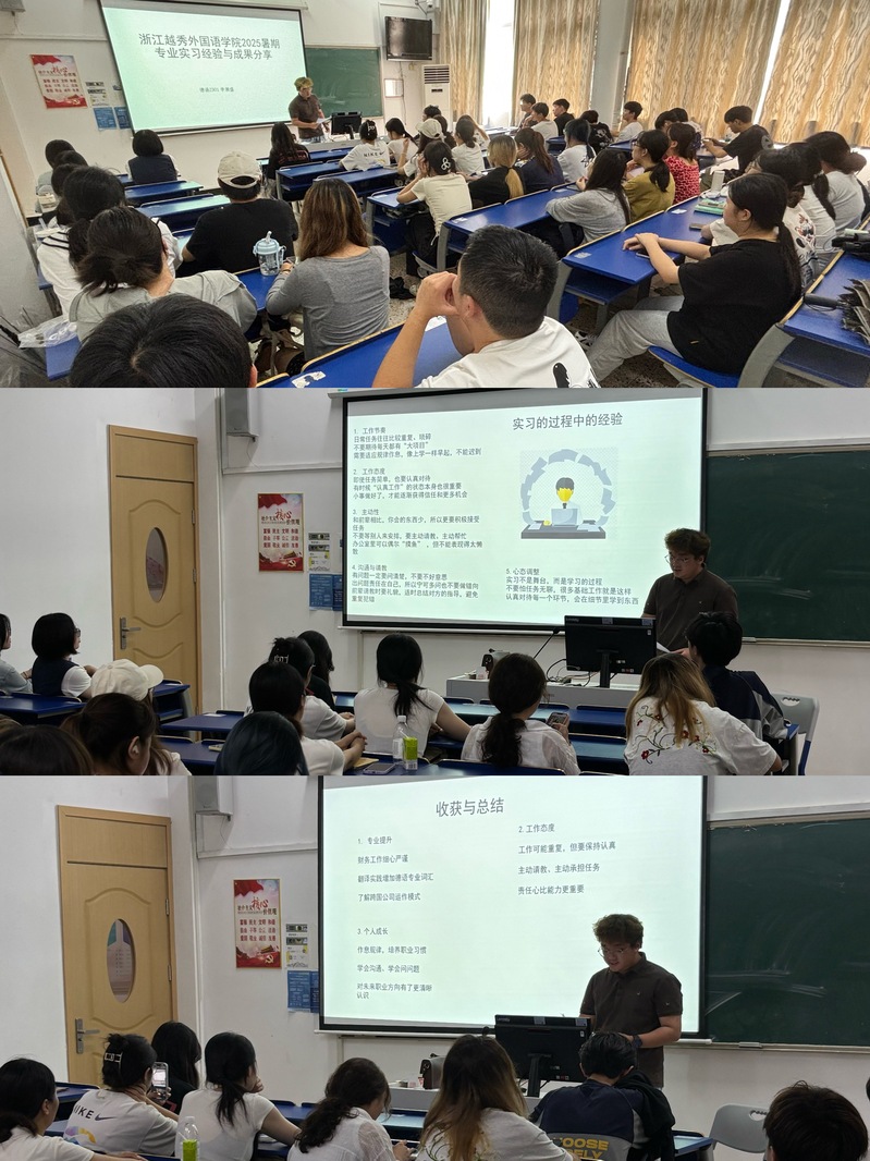 2025年9月18日下午,浙江越秀外国语学院德语系在D114教室成功举办德语专业实习分享交流会,24级学生踊跃参与。