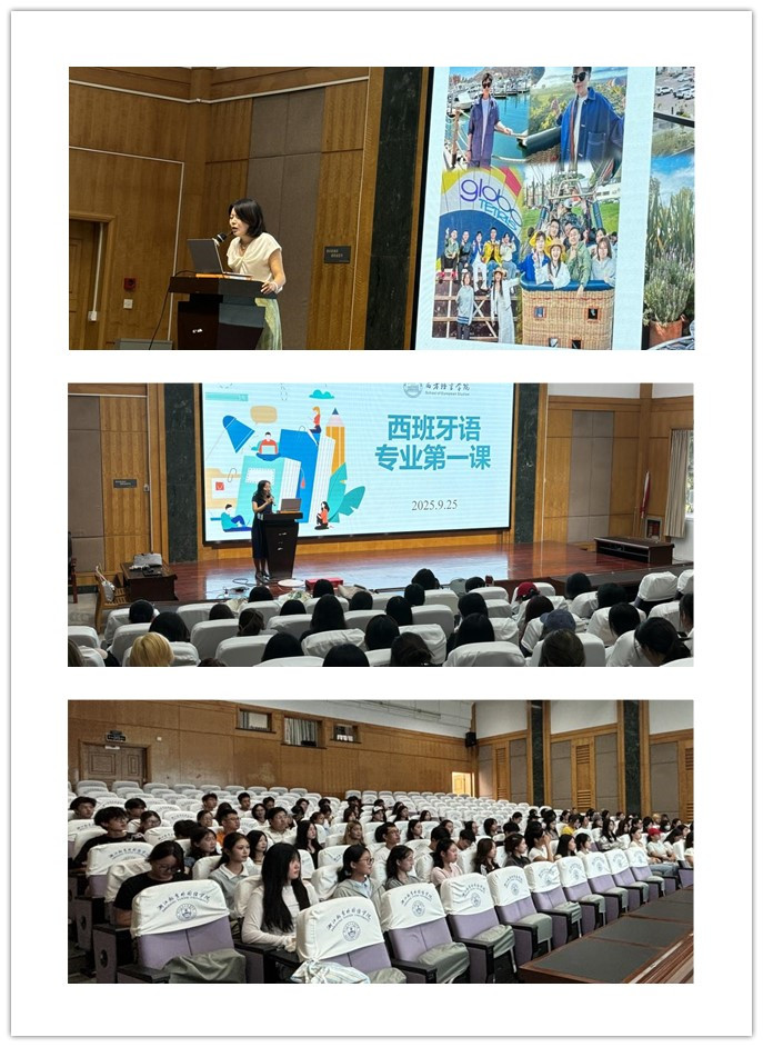2025年9月25日,西方语言学院西班牙语系在稽山校区图书馆报告厅举办了2025级新生“专业第一课”活动。本次活动旨在帮助新生全面了解专业特色、明确学习方向,尽快融入西语系大家庭。西方语言学院西班牙语系主任刘洁老师、副主任彭璐娇老师、高级西班牙语教研室主任耿璐老师,以及2025级新生班主任马亚琼老师、沈梦驹老师、叶燕老师出席活动,活动由基础西班牙语教研室主任叶翔舟老师主持。