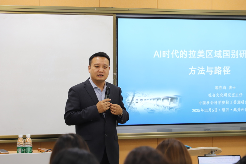 为回应人工智能对人文社科领域的深刻影响,中国社会科学院拉美研究所郭存海教授莅临西方语言学院,为师生们带来一场题为“AI时代的拉美区域国别研究:方法与路径”的讲座。此讲座于2025年11月5日下午15:30-17:00在西语学院D329成功举办,学院相关领导、各系教师代表及部分学生参加了本次活动,现场气氛热烈。