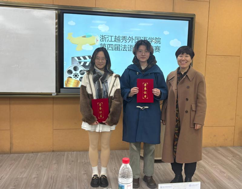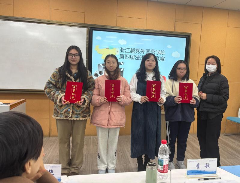 2025年12月3日晚,浙江越秀外国语学院第四届法语配音比赛在D329教室拉开序幕,此次活动吸引了众多法语专业学生踊跃参与,他们各展所长,奉献了精彩纷呈的表演。本次比赛的评委老师为:法语系教师王淑艳、高文潇、李敏和曾珍。