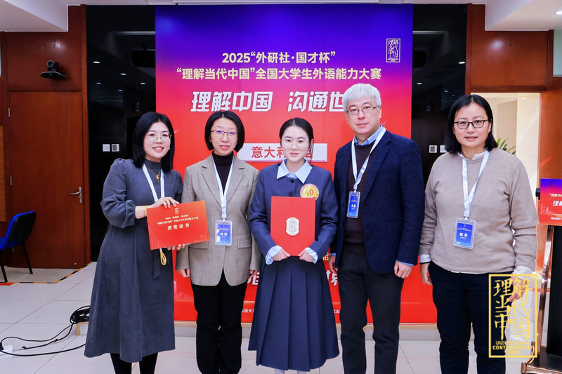 经过校赛、省赛、国赛半决赛三轮激烈角逐,来自国内7所高校的10位选手成功入围意大利语组总决赛。全国总决赛设置汉意口译、即兴演讲和现场答题等环节,我校意大利语专业2201班翁雨欣同学凭借扎实的语言功底、开阔的视野和沉稳自信的临场表现,荣获金奖,实现了我校在“国才杯·理解当代中国”系列比赛中的新突破。