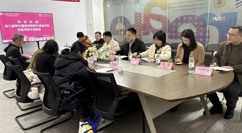 成都外国语学院中东欧语言学院党委书记杨卓、西欧语言学院院长陈果携领导班子及各部门负责人对调研组一行表示了热烈欢迎。调研会上,杨卓书记围绕小语种学科建设、人才培养及就业前景作专题发言,全面介绍学院专业特色和师资力量,展示了学院在语言教育领域的创新成果。陈果院长就学院国际交流、校企合作、实习实践等情况做了详细介绍。陆海萍书记介绍了我院在外语人才培养和国际化工作中的相关情况。三方围绕党建融合、就业宣传创新、日常教学管理、学生职业能力提升及校企资源对接等议题展开深入探讨。