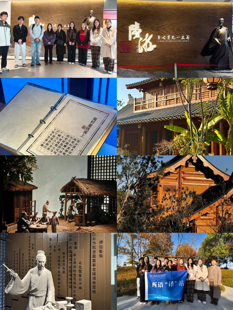 11月30日下午,西语“译”站九名同学在学院关工委陆海萍老师、杨令飞老师和王淑艳老师的带领下前往绍兴陆游故里开展“走近陆游”主题文化实践活动。通过实地参观、师生交流,同学们在陆游生活过的旧居中切身感受其生平经历与精神世界,完成了一次生动的现场文化学习。