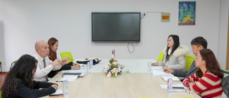 讲座正式开始前,Bertrand Blancheton院长及随行工作人员与我校西方语言学院院长助理赵吉鹏、法语系主任华淼、法语系外事负责老师庄淑娜于D233会议室举行工作会谈。双方围绕现有合作项目的深化推进、未来合作领域的拓展方向等议题展开深入磋商,就联合培养模式优化、学术资源共享等具体事宜达成多项共识,为两校持续深化友好合作奠定了坚实基础。