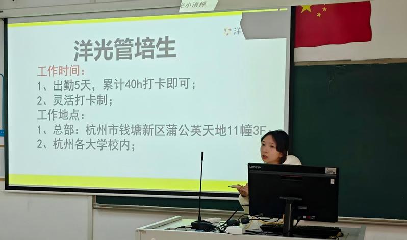 招聘环节中,企业代表任可歆围绕岗位设置与培养模式展开详细讲解。本次招聘会面向我院学生开放语言教学助教、课程运营、教学管理、管培生四大类实习与就业岗位;针对入职学生,企业将通过系统专业培训、一对一导师带教、一线岗位实践锻炼的立体化培养方式,帮助学生快速提升语言应用能力、教学实操能力与职业综合素养,实现从校园到职场的平稳过渡。