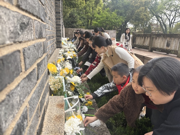活动现场庄严肃穆,全体人员整齐列队,面向烈士纪念碑肃立默哀,表达无限哀思与崇高敬意。青年代表向革命烈士敬献花篮,三鞠躬后,师生们依次缓步上前,向烈士纪念碑敬献鲜花。洁白的菊花寄托着对先烈的无限敬仰,深深的鞠躬凝聚着对英雄的崇高敬意。大家神情庄重,驻足凝视,在纪念碑前久久沉思,重温那段烽火连天的峥嵘岁月,感悟革命先辈不畏牺牲、矢志奋斗的伟大精神。