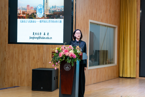 第二场报告由浙江外国语学院王松亭教授主持。北京大学凌建侯教授阐述了俄国文学研究的中国学派建设的底色与气象,主张立足本土立场、深化国际学术对话,为本土学术话语走向世界贡献中国智慧。武汉大学阮建平教授深入剖析了人工智能时代的理性主义与人文精神,指出人工智能需以人文精神加以驾驭,避免技术滥用对人类认知与心智成长的潜在冲击。复旦大学姜宏教授从俄罗斯语言哲学出发,揭示了民族语言与民族命运的内在关联及其对中国语言哲学体系建构的重要启示意义。